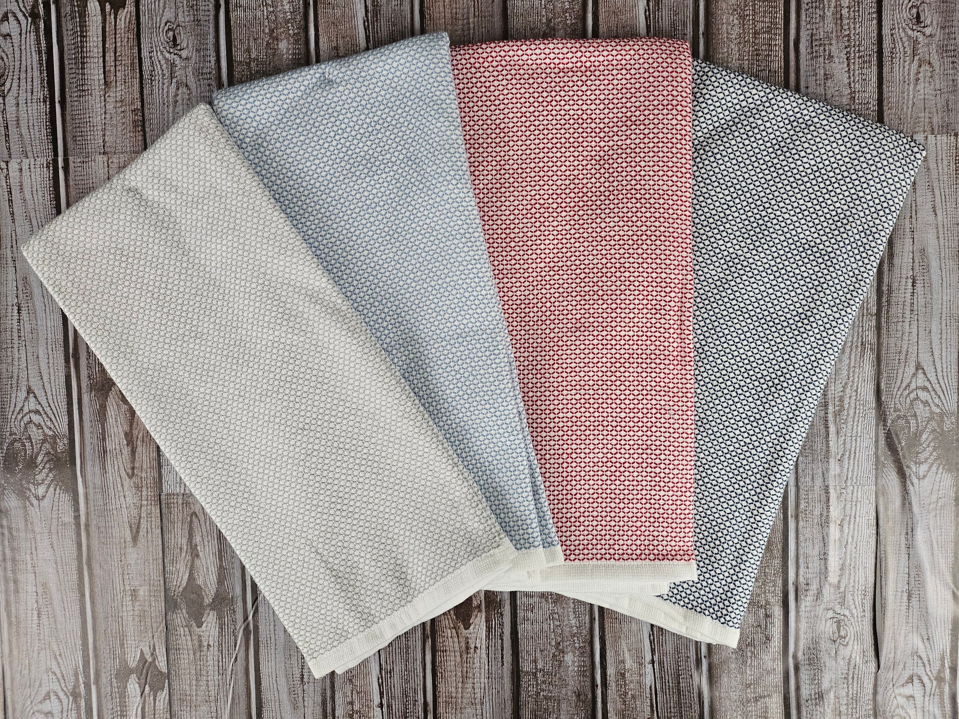 These generously sized 20x30 inch towels are crafted from 100% high-quality cotton with a classic woven colored and white pattern that fits effortlessly into both rustic and modern interiors.